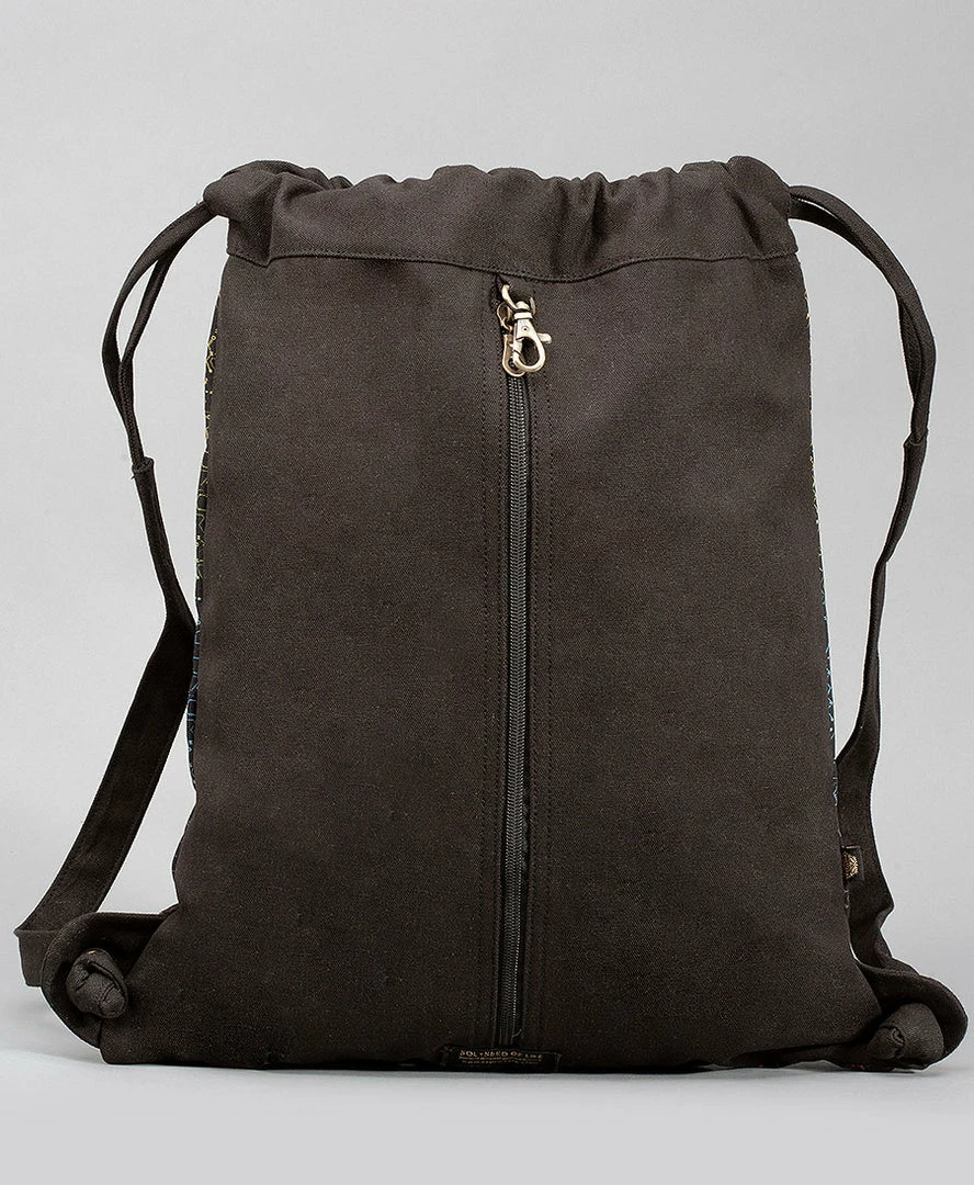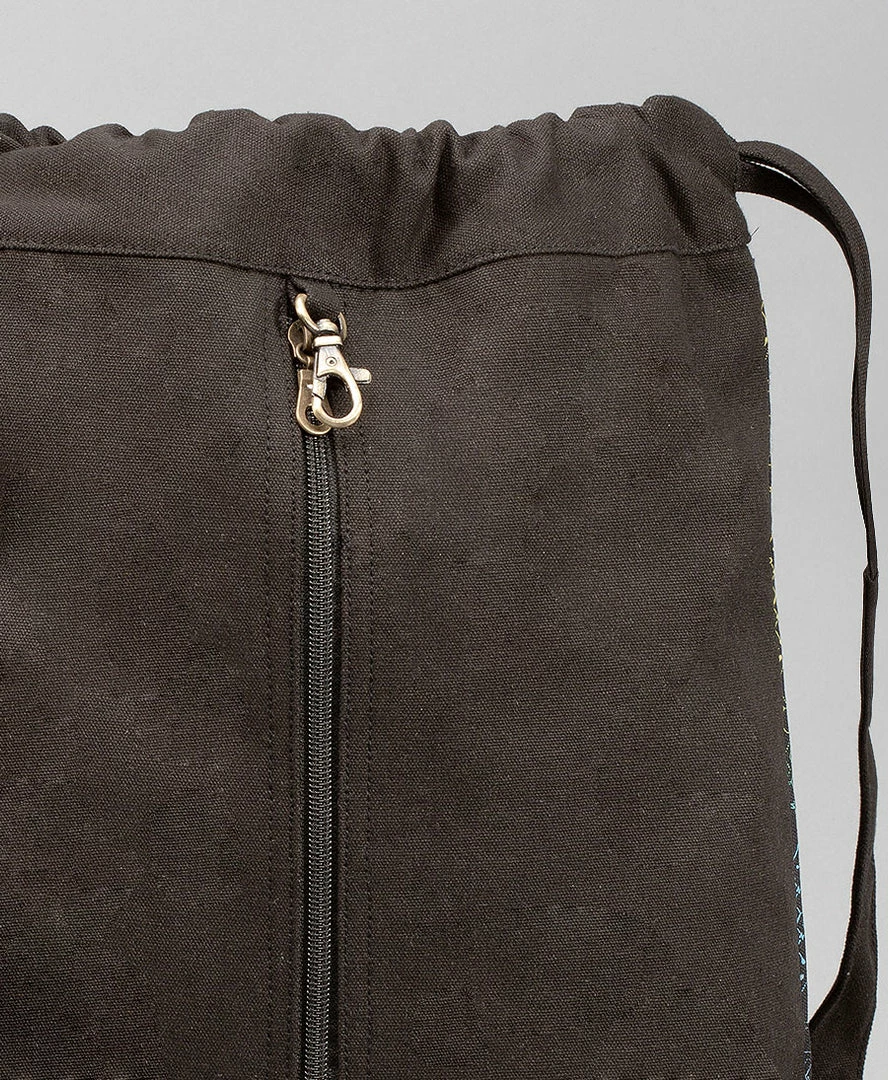 Canvas drawstring backpack.