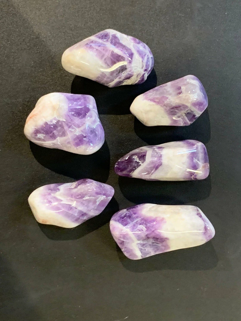 Chevron Amethyst is a combination of Amethyst and White Quartz, mixed together naturally in a V-shaped or banded pattern. Chevron Amethyst combines the strengthening and enhancing qualities of Quartz with the stress relieving and intuitive qualities of Amethyst. This symbiotic combination of minerals is what makes this an amazingly spiritual stone.