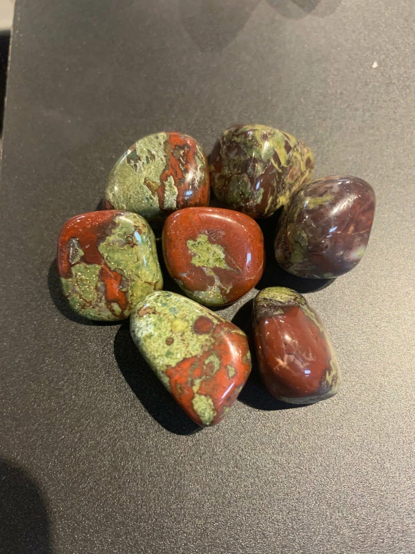 Found only in Australia, local legend believes it to be the remains of Dragons with the green representing the skin and the red representing the blood. This Jasper brings out the inner dragon in all of us! On one side, it fiercely emboldens courage, resolve, determination and practicality, while the other side of our inner dragon is nudged gently, to offer love, forgiveness, and compassion to others. It is a Heart Chakra Stone that represents love and passion. It is a great stone for those facing an illness as it promotes inner strength and willpower and an energetic boost of vitality to help one’s recovery.