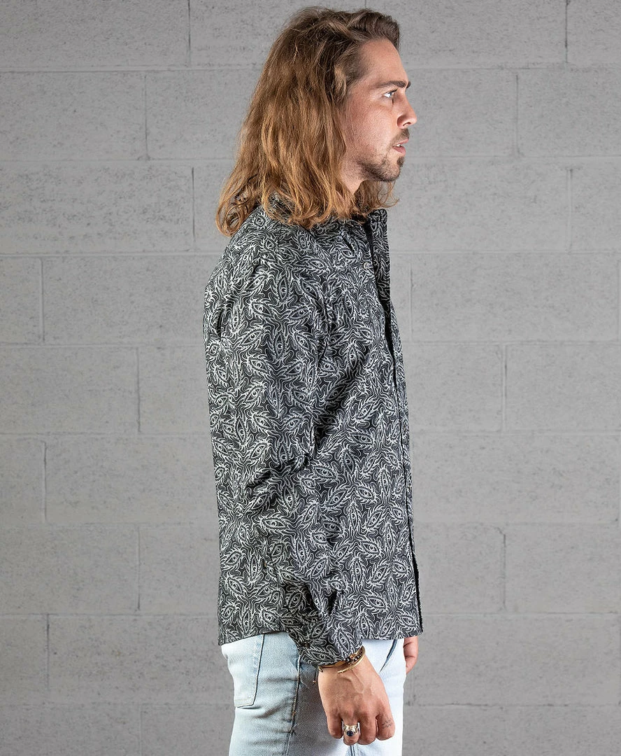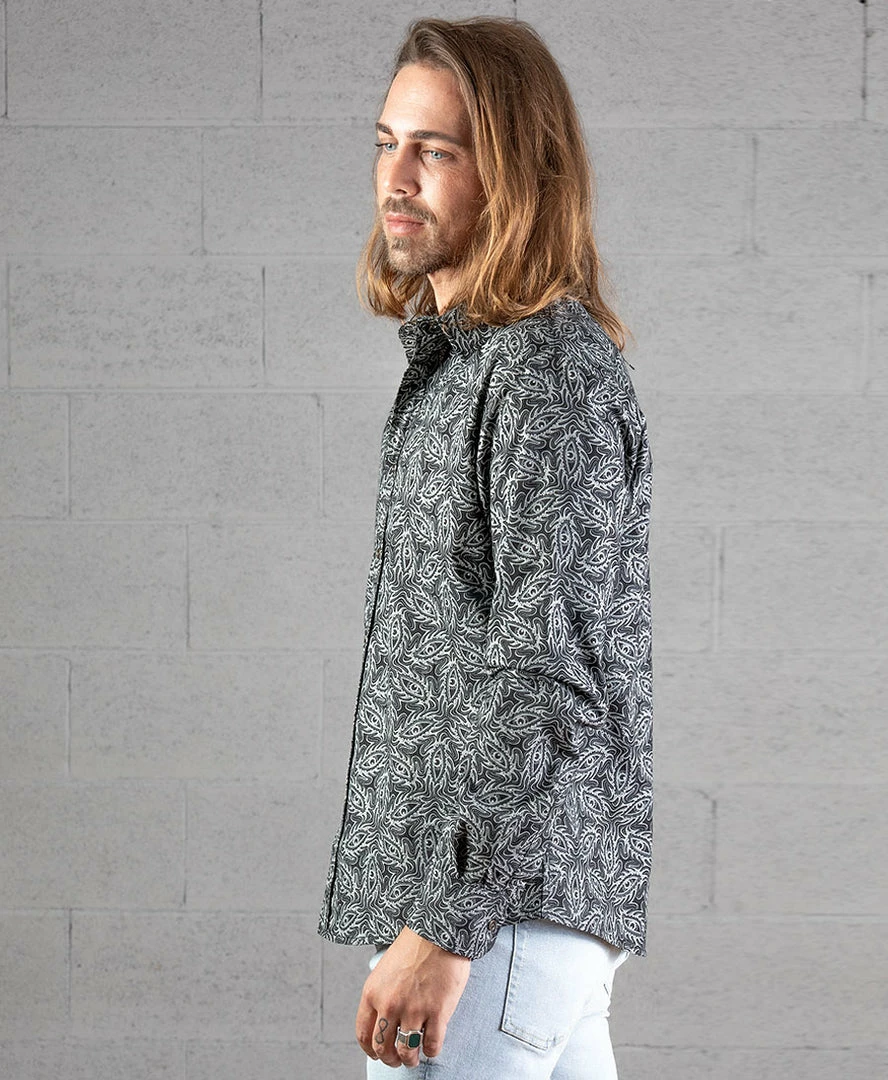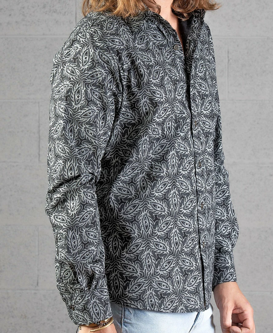 Men’s long sleeved button up (button down) shirt with psychedelic pattern- all over print.