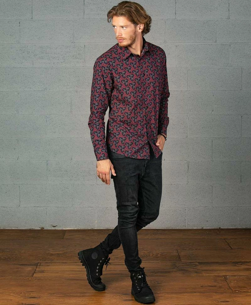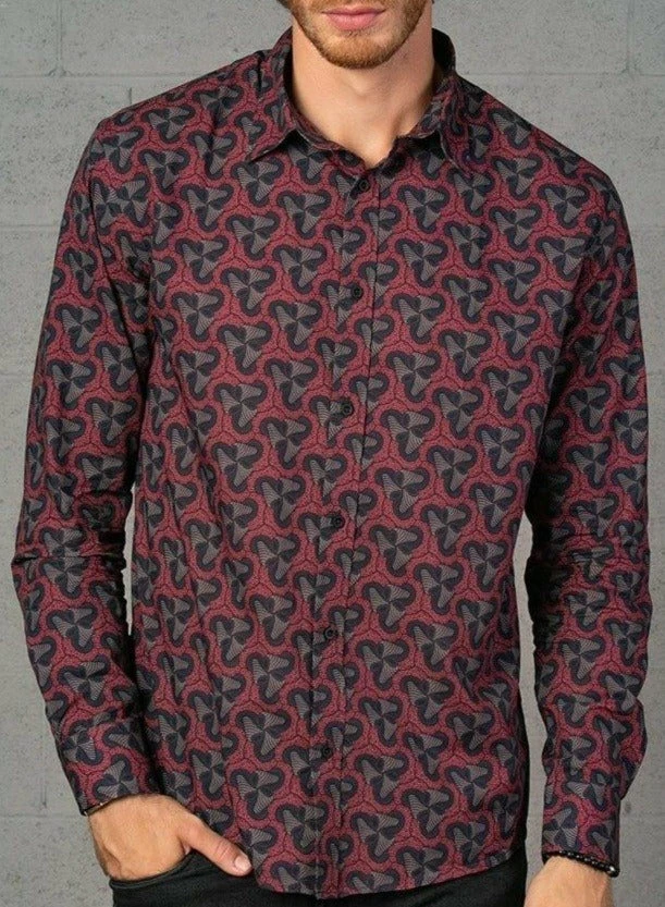 Men’s long sleeved button down shirt with psychedelic all over print.