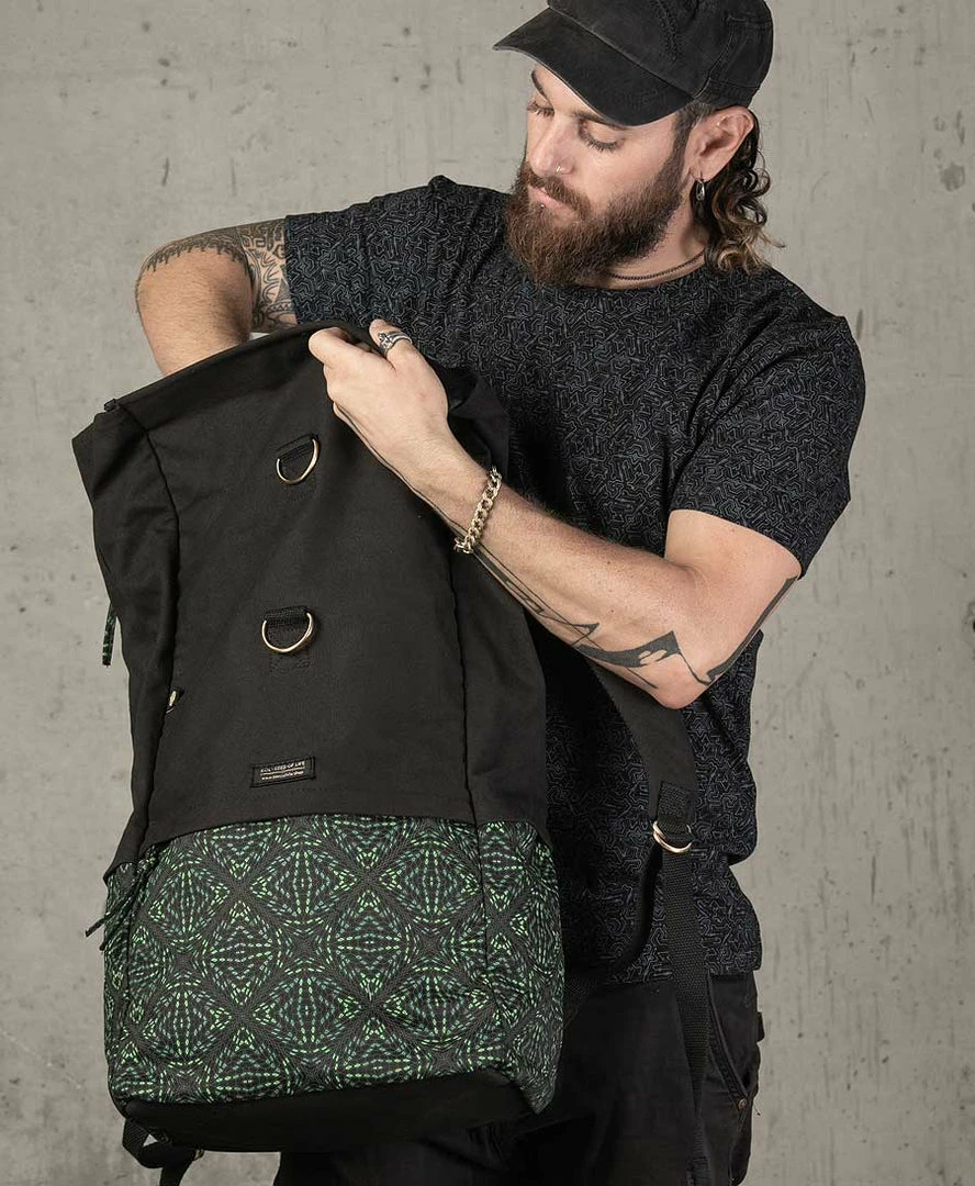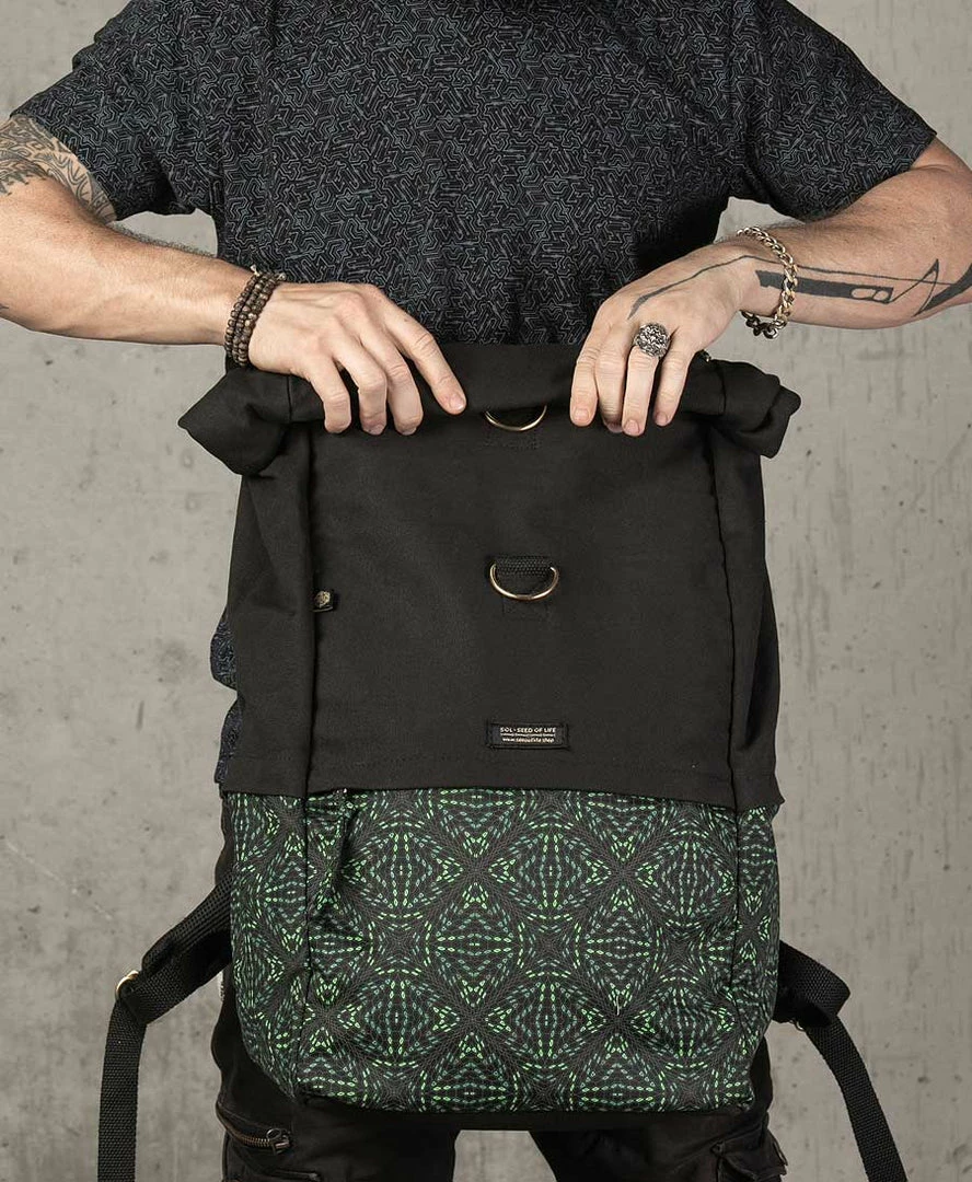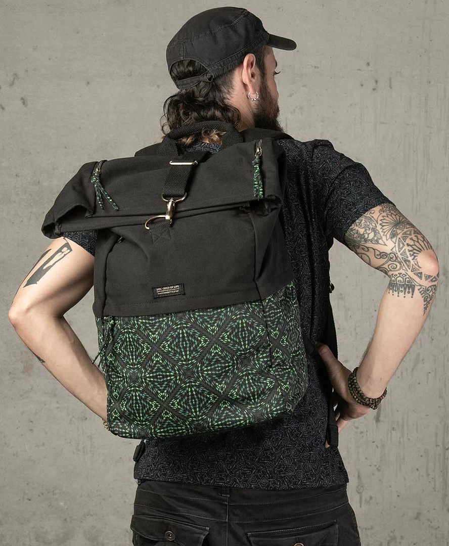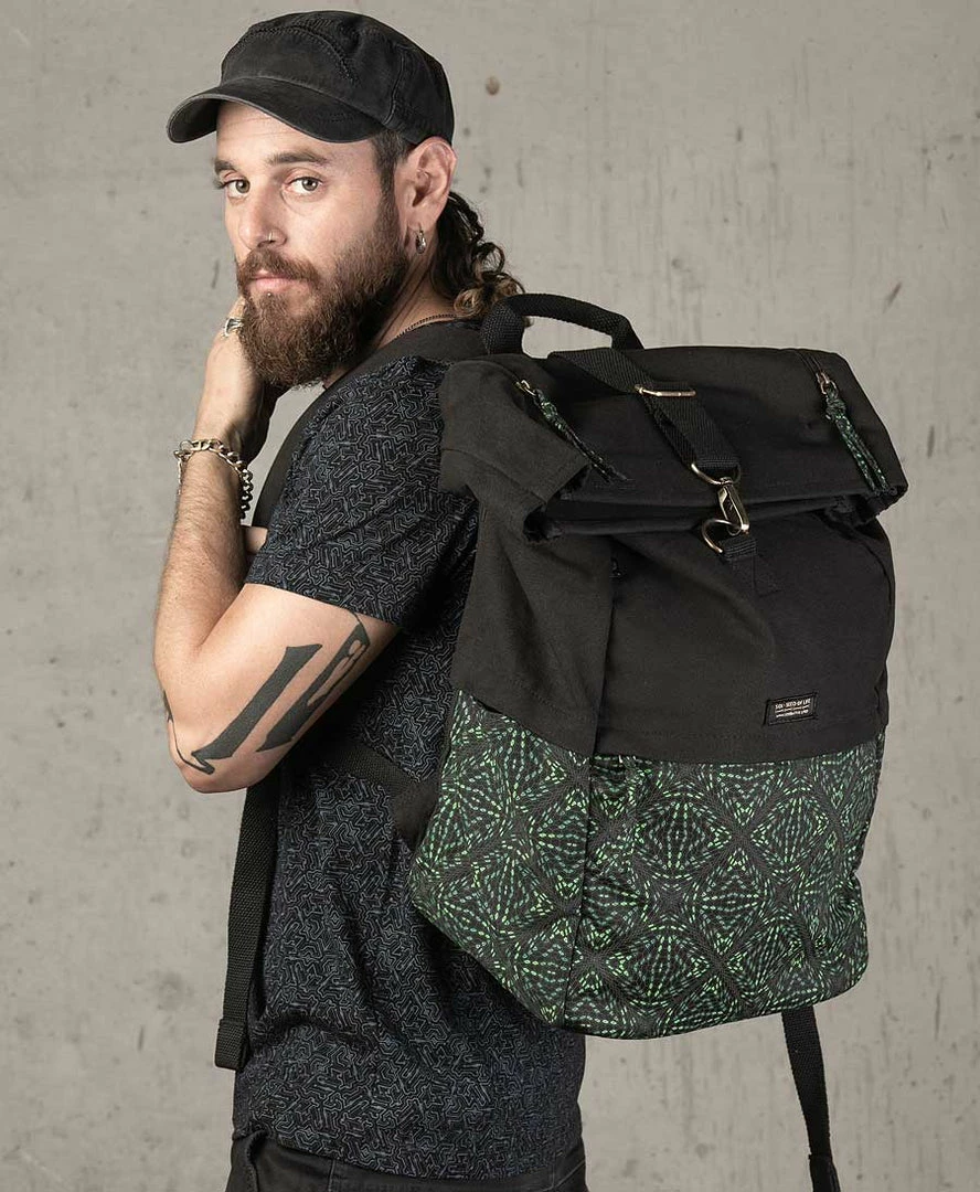 Extra large roll-top backpack 45L with our psychedelic art printed in high quality silk screen printing.