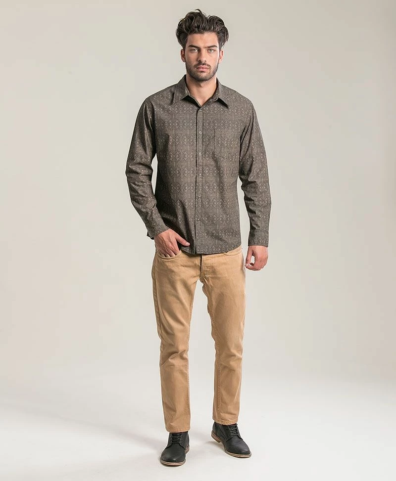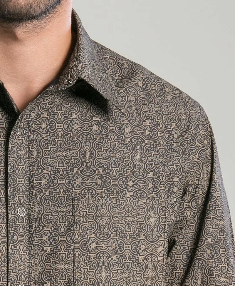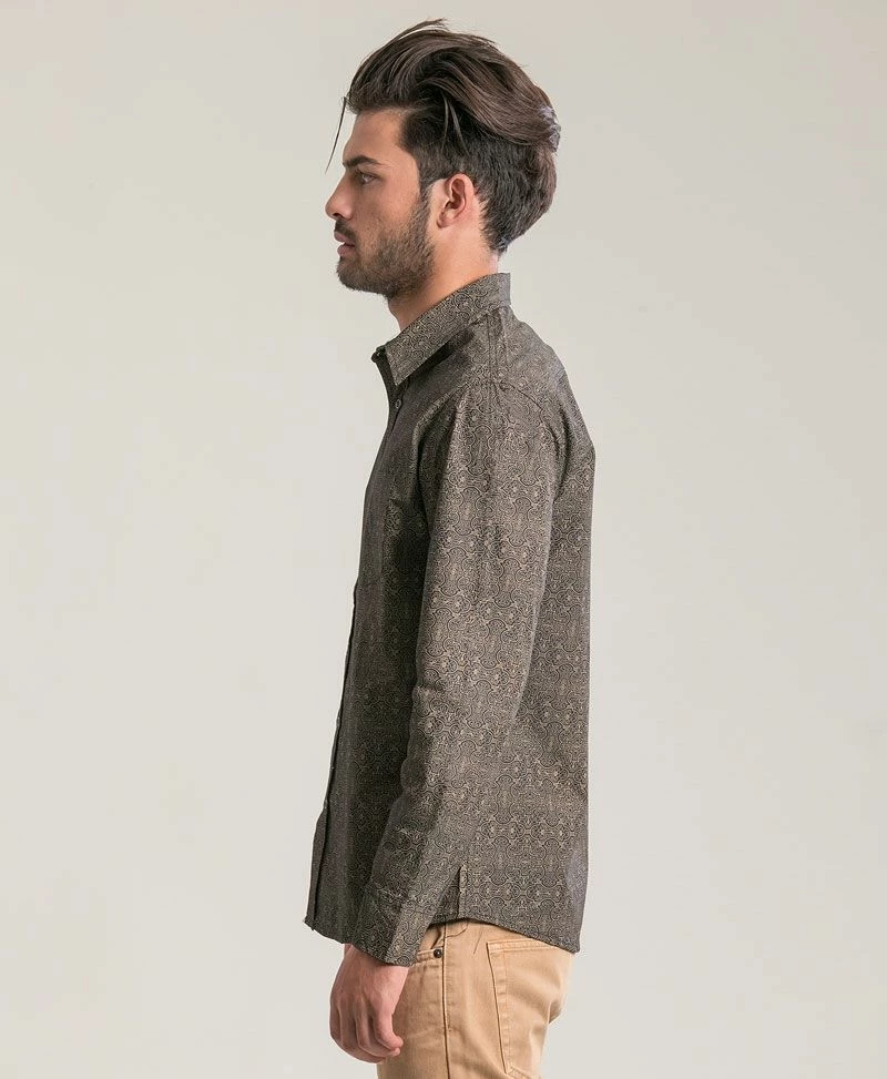 Men’s long sleeved button up (button down) shirt with psychedelic pattern- all over print.