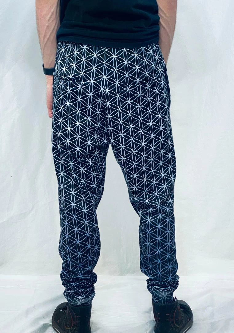 Features 2 deep side pockets with zippers, and 2 deep back pockets with zippers (all materials have back pockets but only crushed velvet has zippers on the back pockets). Heavier & sturdier than the more pajama-like options out there.