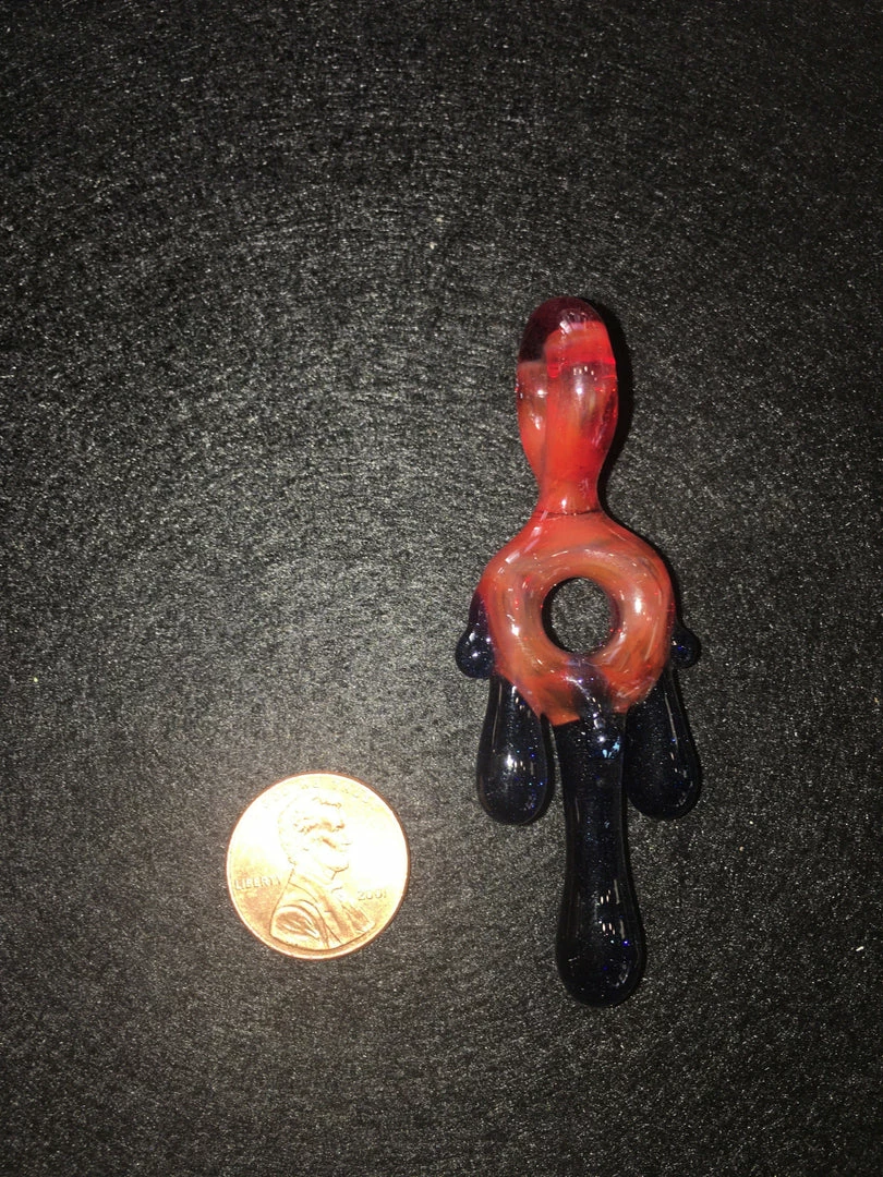 Hand blown glass from Brainfreezeboro. Large necklace hoop allows for this pendant to be worn with many necklace chains. (may react in UV/blacklight)