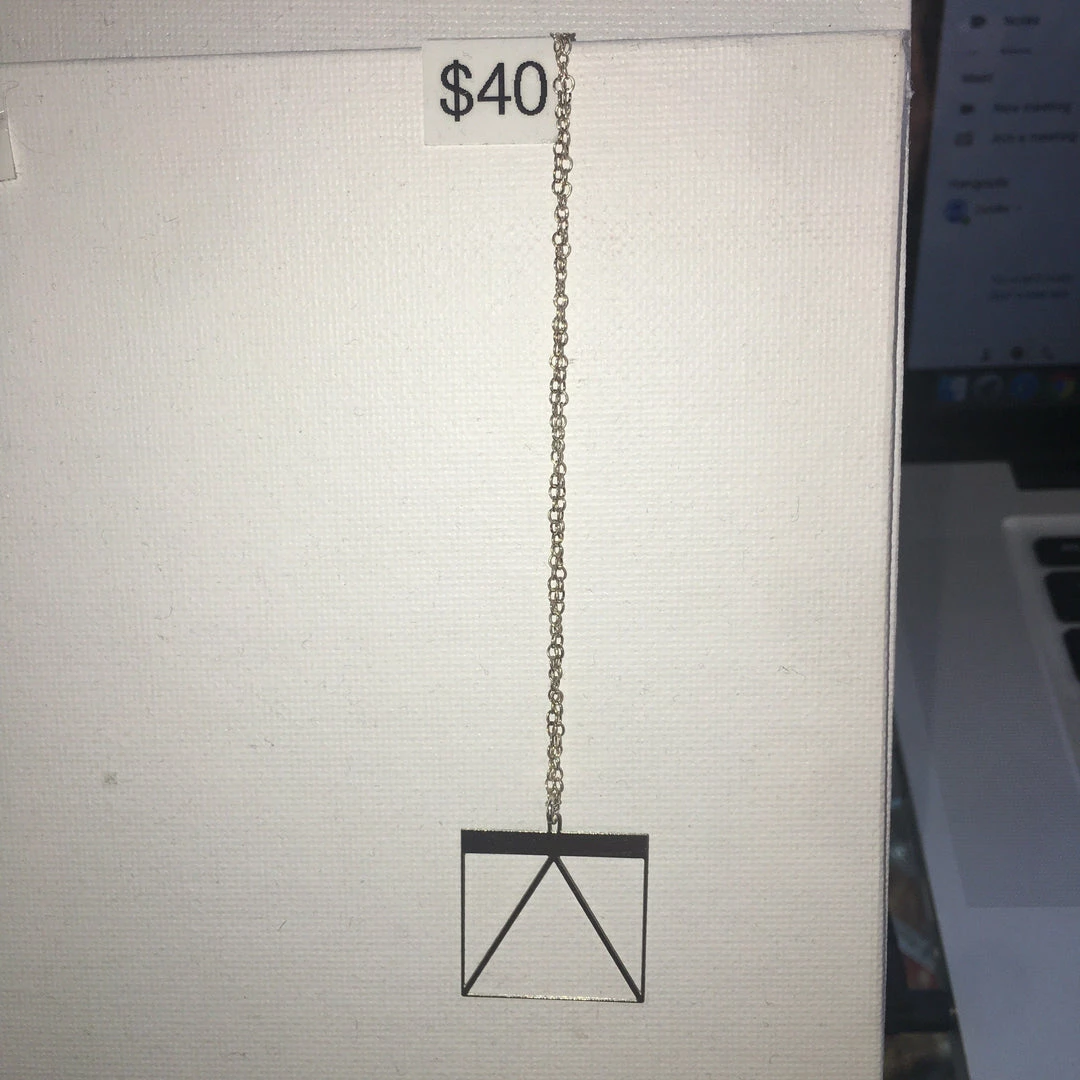 With balanced perfection of a square split neatly into an equilateral triangle, the necklace symbolizes that harmony found within geometry and form.