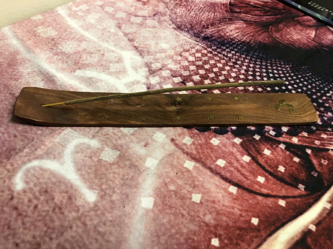 ~10″ x ~2″ wooden incense holder with a slot for 1 incense stick (1 sample included)