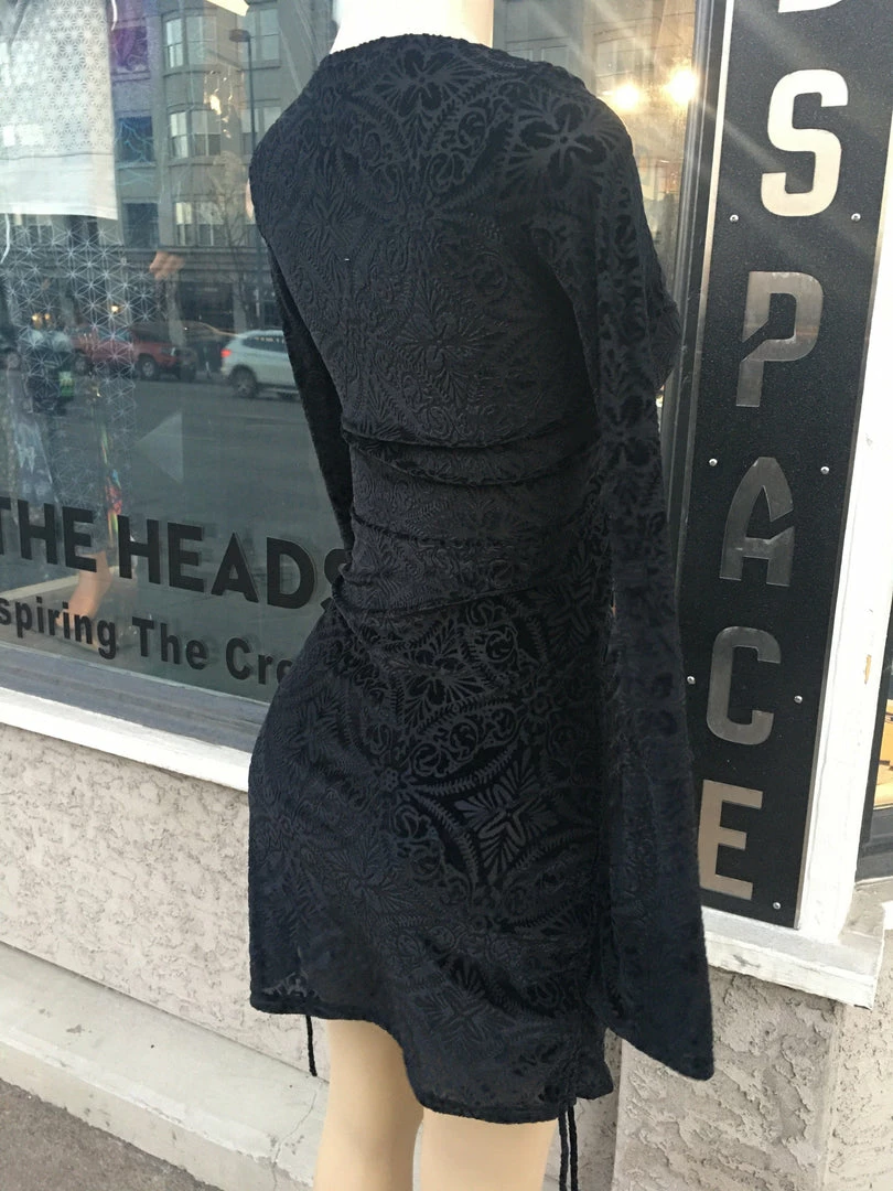 Fabric Features: Midnight Burnout Velvet. 90% Polyester, 10% spandex.